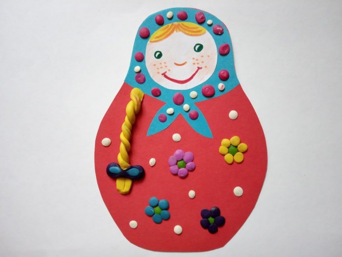 Матрешка с рисунком из пластилина
