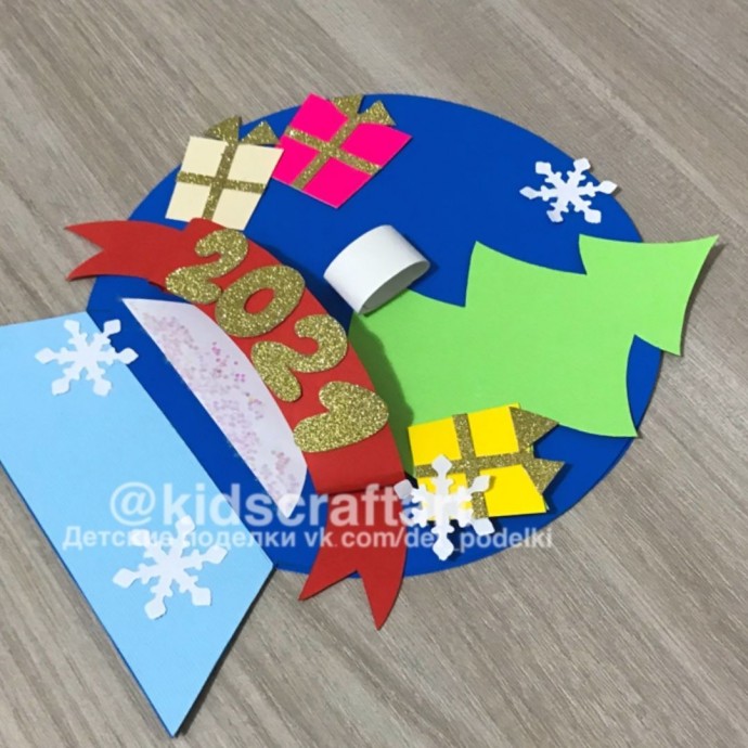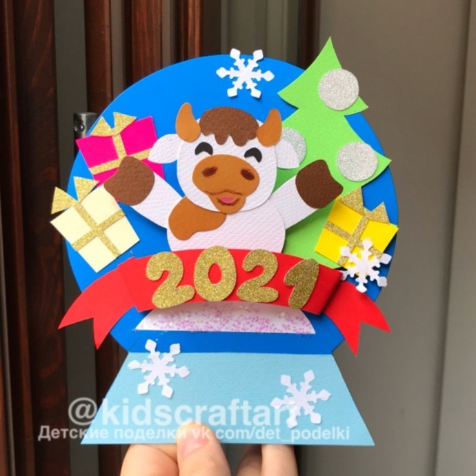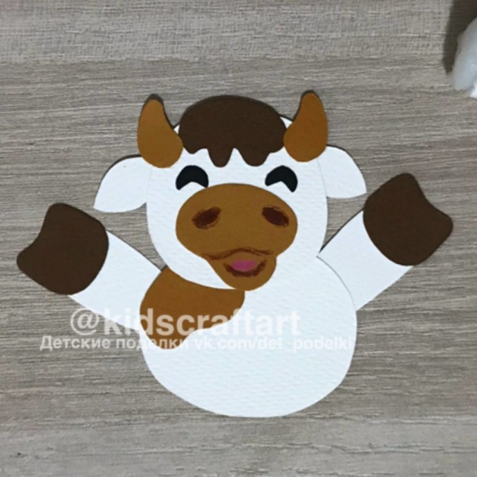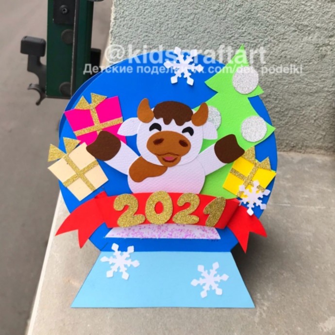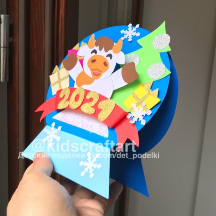 Открытка "Коровка 2021" - символ Нового года, который дети могут сделать на подарок гостям или родным.