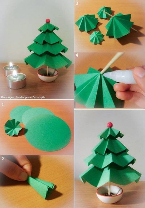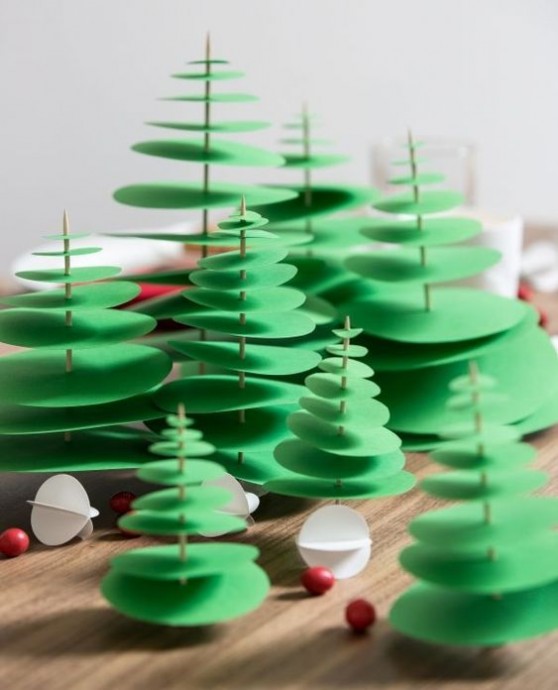 Ёлки из бумаги-гармошкой можно нанизать на шпажки для шашлыка.