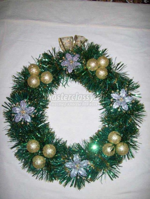 Этот новогодний венок настолько прост, что справятся даже дети.