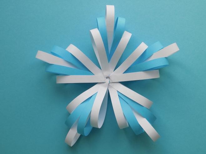 Клеим с детьми снежинку из цветной бумаги