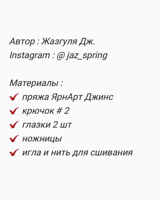 Новые материалы от 23 декабря Маленький оленёнок Маленький оленёнокМаленький оленёнок крючком это развитие в ребенке таланта создавать прекрасное и новое. маленький оленёнок, олень, олени, олененок, оленята, пряжа, клубок, клубочек, клубки, спица, спицы, крючок, крючки, вязать, вязание, вяжем, связали, нитки, ножницы, перекусы, выкройка, шаблон, моделирование, модель, схемы, схемы узоров, узоры, лучшие узоры, размер, размеры, петля, петли, петелька, петельки, ряд, ряды, поделка, поделки, поделочка, поделочки, детская поделка, детские поделки, творчество, детское творчество, поделки с детьми, поделки с ребенком, творение, творить, делать, сделать, творить вместе, делать вместе, творчество с ребенком, мастерим вместе, мастерить вместе, мастерство, развитие, творческое развитие, развитие мелкой моторики, развитие творческого мышления, развитие логики, развитие объемного видения, развитие таланта, развитие талантов, талант, таланты, счастье Мне нравится16 1 Добавить в закладкиНазначить теги OK VK Facebook @mail.ru Pin! ОленёнокОленёнокОчень грустно олененкуОдному бродить в лесу.Сладкий шоколад "Аленка"Ему завтра отнесу.Рассмеемся мы с ним звонкоИ попляшем от душиПод раскидистою березкой...Если мама разрешит.Оленёнок из фетраОленёнок из фетраКто без компаса и картыМчится в тундре, тянет нартыВ ночь полярную и в день?Это – северный олень.О. МоскаленкоОленёнок из фетраОленёнок из фетраОлененок молодойБархатные рожкиОт меня умчался вскачьПо лесной дорожке.Оленёнок из фетраОленёнок из фетраУ меня на лбу рога,Чтобы победить врага.Тихо я брожу по лесу.Я люблю туман-завесуИ люблю от листьев тень.Я – большой лесной олень.Валентина ЧерняеваОленёнок из фетраОленёнок из фетраОчень грустно олененкуОдному бродить в лесу.Сладкий шоколад "Аленка"Ему завтра отнесу.Рассмеемся мы с ним звонкоИ попляшем от душиПод раскидистою березкой...Если мама разрешит.Оленёнок крючкомОленёнок крючкомПодробное описание процесса вязания смотрите ниже.Оленёнок крючкомОленёнок крючкомАвтор: @alizi_toys.Подробное описание процесса вязания смотрите ниже.Оленёнок из пряжиОленёнок из пряжиАвтор: milosti.priiatnostiВязаный оленёнокВязаный оленёнокАвтор: miracles_toysМилый оленёнокМилый оленёнокШаблон для зимней аппликации "Милый оленёнок" предоставлен, чтобы у детей был выбор делать его из цветной бумаги или разукрасить детали акварелью.Погремушка ОленёнокПогремушка ОленёнокПряжа полухлопок yarnArt jeans/ gazzal jeans или аналог.Крючок 2, 2.25.Буковое колечко 6-6,5мм.Черная нить для вышивания.Гремелка.Наполнитель. Голову закрываем до конца, до 7 у...Погремушка "Оленёнок"Погремушка "Оленёнок"Автор: arevik_toys. Написать комментарий Ваше имя: E-mail для ответов: Загрузка... 1 комментарий Татьяна Чувьюрова 2020-12-23 12:14:36 # ↓ Спасибо большое. Они такие милые и трогательные. Ответить Самое популярное