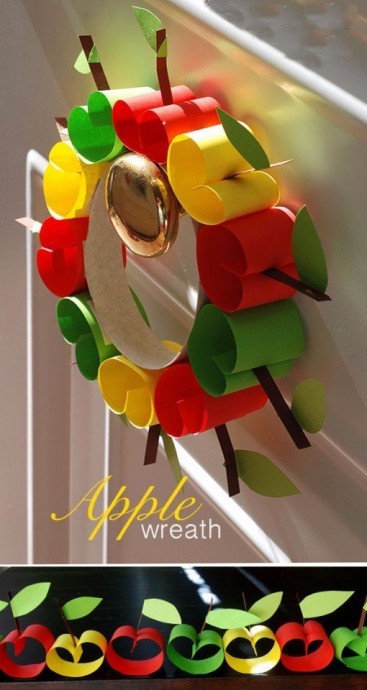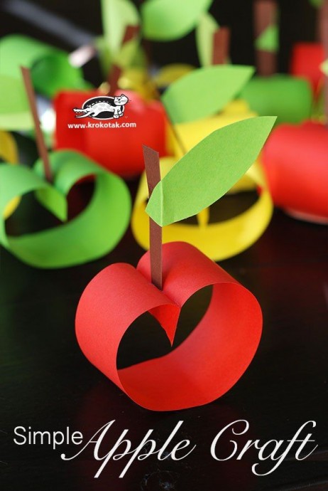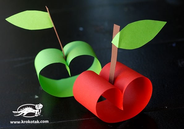 Яблочки из цветной бумаги, которые могут выполнить даже малыши, готовы украсить вашу ёлочку.