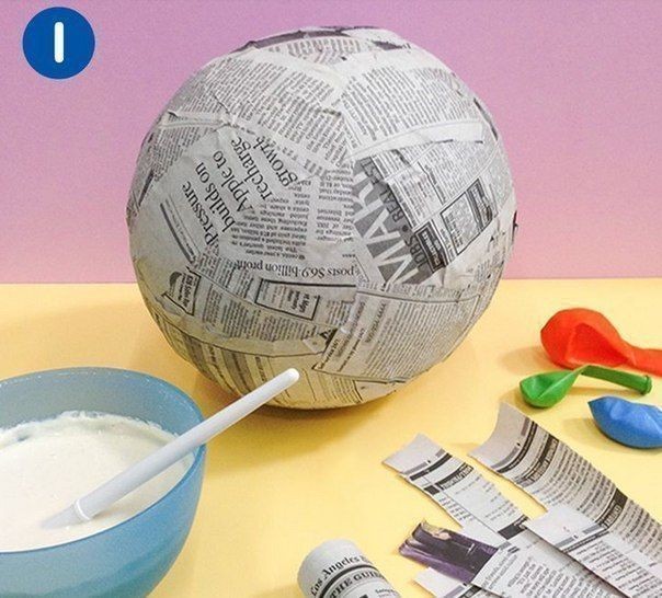 В качестве основы - плотный воздушный шарик круглой формы или резиновый круглый мячик.