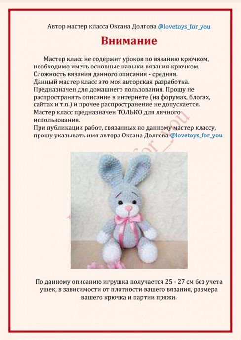 Чудный зайка, девочке учиться вязать с помощью вязания этого зайчика будет очень интересно. Моя правнучка ещё маловата, ей 4 года, но надеюсь, что со временем ей этот зайка пригодится. Спасибо Оксана.