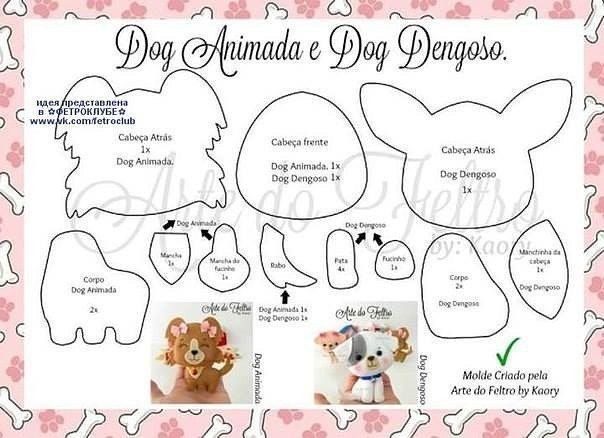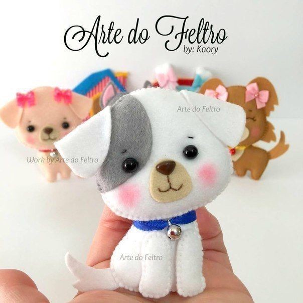Очаровательные собачки из фетра делаются по одной выкройте с разными деталями.