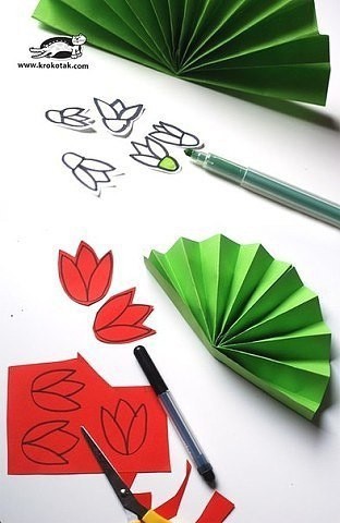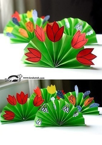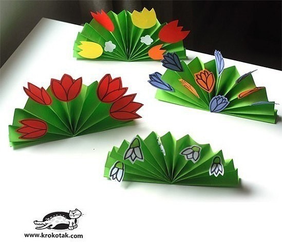 Объемная открытка "Поляна с цветами" похожа на веер.