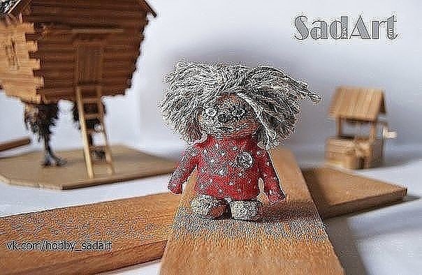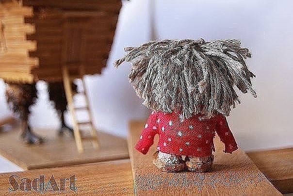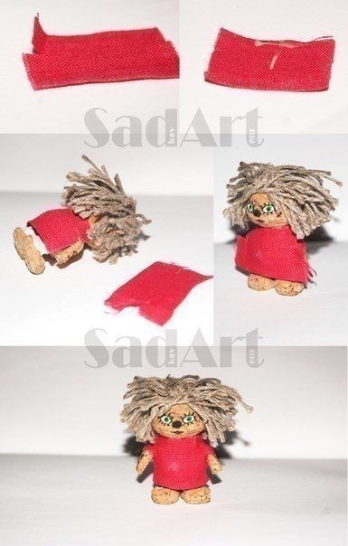 Домовёнок Кузя выполнен из пробки, шпагата и кусочка ткани.