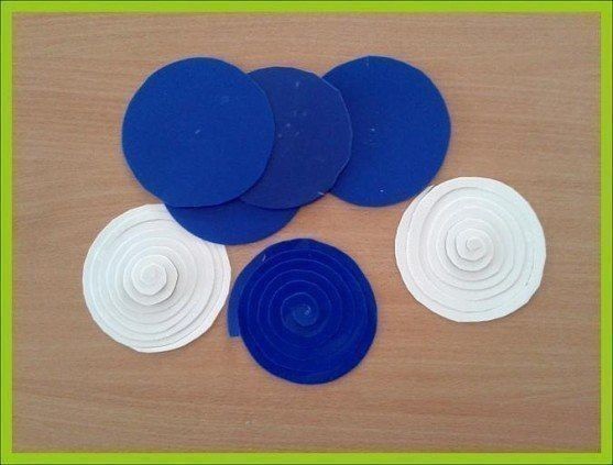 Половину приготовленных таким образом заготовок - кругов используем для цветов, а другую - для изготовления спиралевидной подвески.