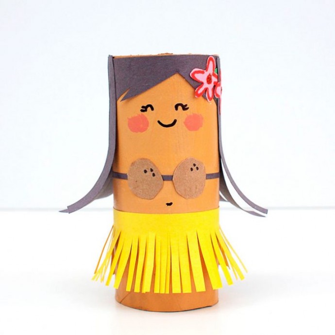 Вам понадобится: 2 туалетные втулки, цветная бумага, ножницы, краски, клей, фломастеры и блёстки.
