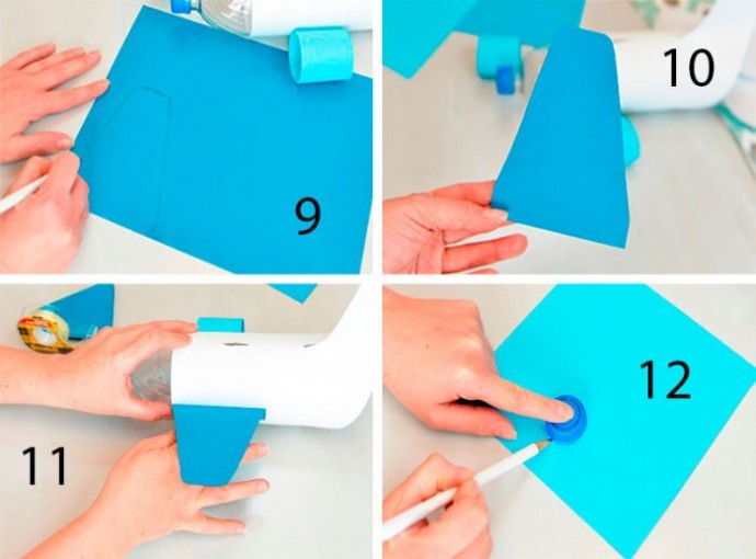 Нарисуйте крылья самолёта, вырежьте, затем приклейте их.