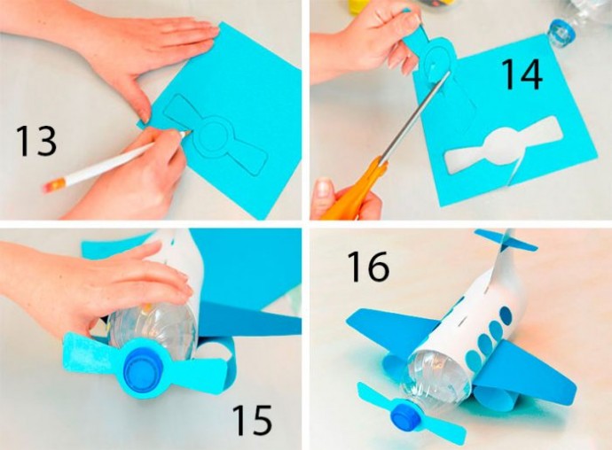 Вырежьте пропеллер, наденьте его на горлышко бутылки и закройте крышкой.
