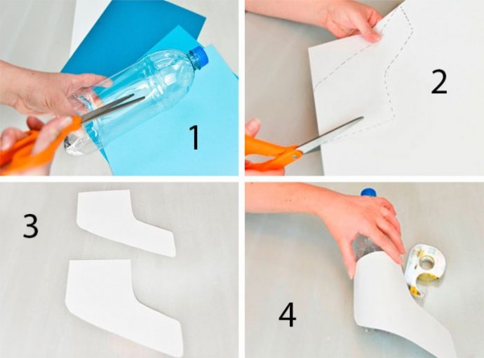 Вам понадобится: пластиковая бутылка (0,5л), цветная бумага, двухсторонний скотч, простой карандаш, ножницы, линейка.
