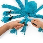Теперь середину этого большого кольца из пряжи перетяните ниточкой, а пряжу на противоположных концах получившихся петель разрежьте.