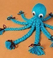 Забавная поделка, которую можно сделать вместе с детьми старшего дошкольного возраста, очень понравится девочкам - потому что этот осьминожка прекрасный тренажер для плетения косичек.