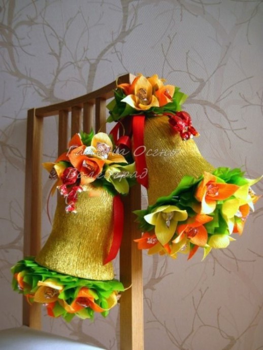 Колокольчик из конфет станет отличным подарком, сделанным детскими руками к любому торжеству.