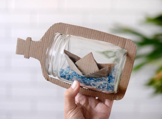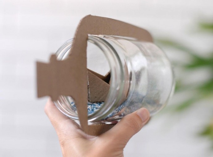 Оригинальная поделка из картона и стеклянной банки может удивить многих.