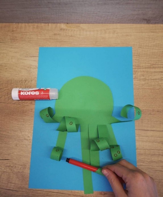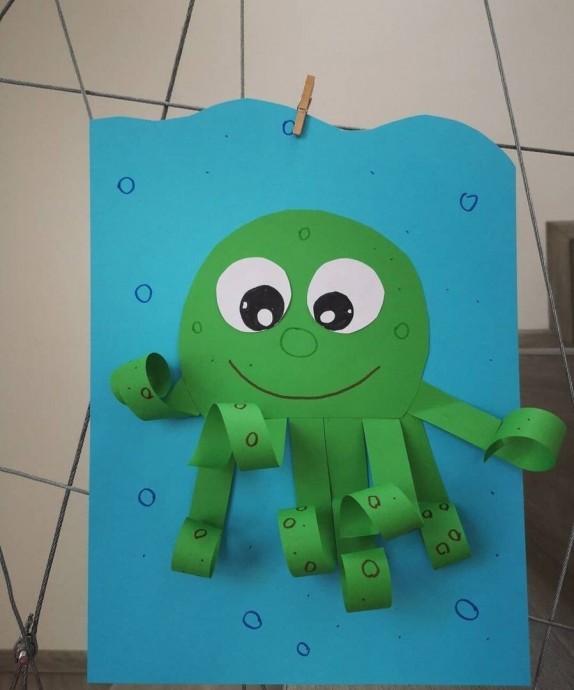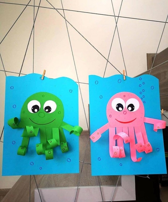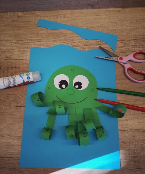 Осьминожки с объёмными щупальцами будет радостно плавать в голубом пространстве листа.