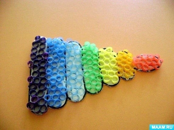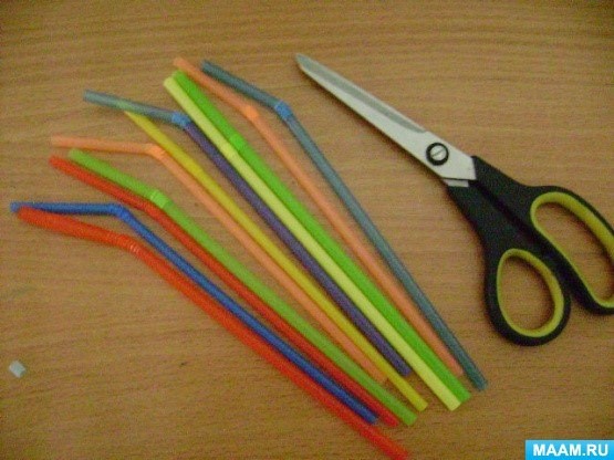 Пирамидка из коктейльных трубочек делается на основе рисунка пластилином.