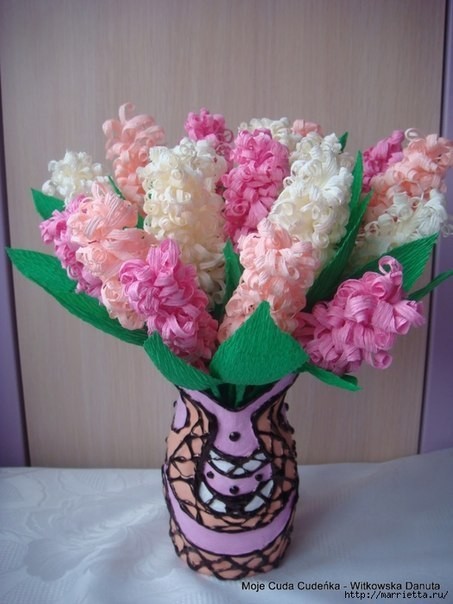 Гиацинты из гофрированной бумаги это музыка весны, замершая благодаря детскому творчеству.