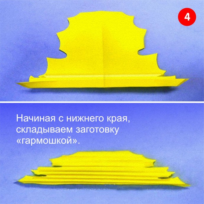 5. Складываем «гармошку» пополам, при этом длинные края направляем внутрь.