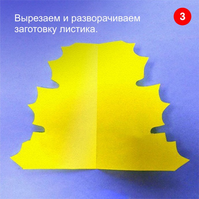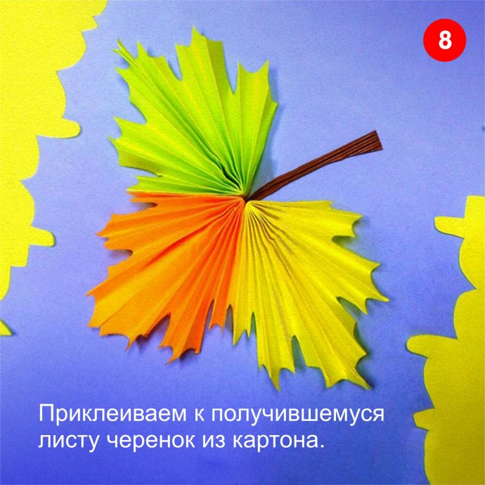 7. Таким же способом делаем ещё два цветных листика. Склеиваем их между собой в один большой кленовый лист.