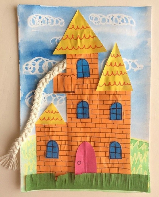 Аппликация "Принцесса в замке" с косичкой, выпущенной из окна - это целое приключение.