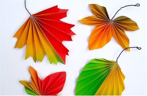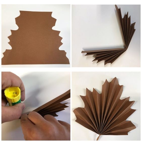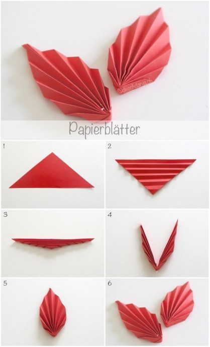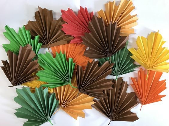 Делаем листики и бумаги, складывая ее предварительно гармошкой.