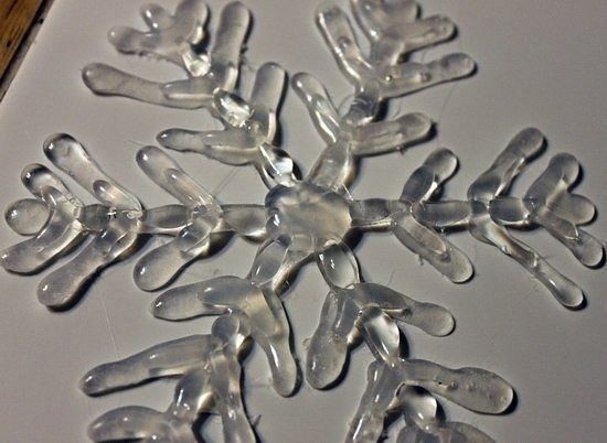 3. Когда клей подсох, отделите снежинку от бумаги. Уберите “паутинку” из клея, которая могла образоваться между переходами в линиях.