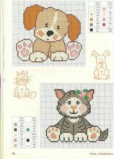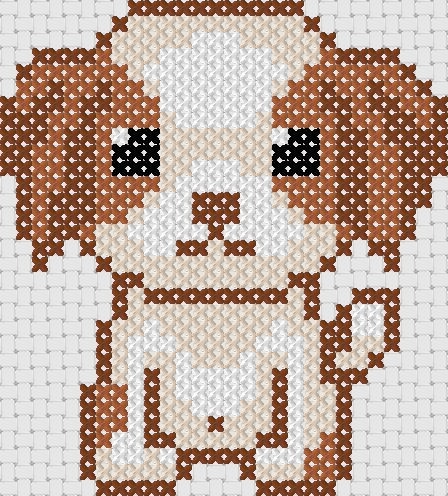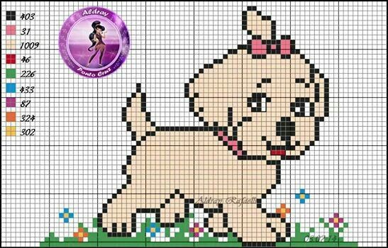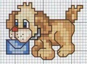 Вышиваем с детьми маленьких собачек и щенков, чтобы тренировать глазомер и точность координации движений.