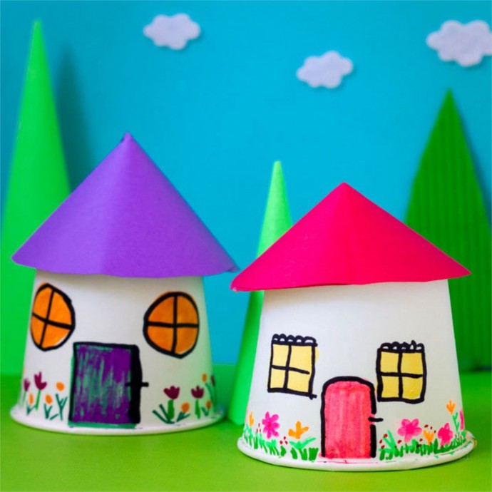 Маленькая деревушка из одноразовых стаканчиков - это то, что надо куклам, чтобы выстроить свои кукольные жизни.