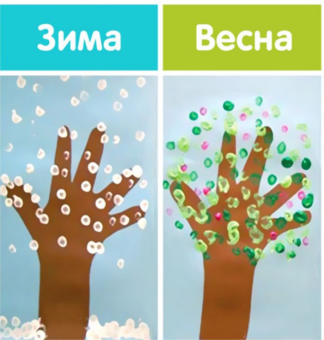 Рисуем ватными палочками времена года
