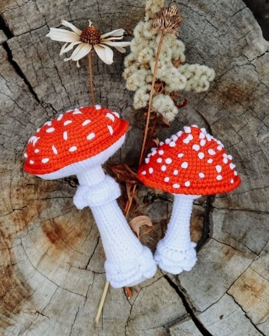 Вяжем с детьми мухомор