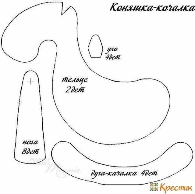 А на фото лошадь недоделанная, что ли? В выкройке есть «дуга-качалка». А где она на фото?