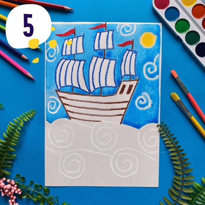 Если что-то нарисовать на бумаге воском, то краски в этой зоне не лягут - и рисунок останется цвета воска.