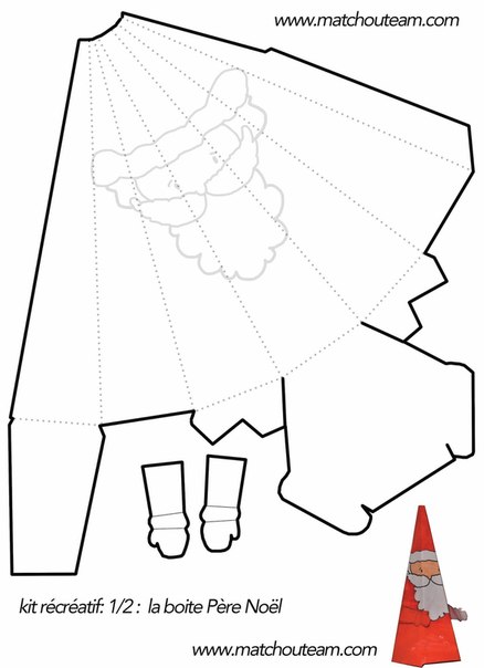 Распечатайте, раскрасьте и склейте. Можно поставить Деда Мороза под елку, на полку, на шкаф, можно сделать гирлянду или мобиль из Дедов Морозов, а можно просто для того, чтобы и к игрушкам пришел свой Дед Мороз с подарками.