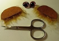 Подбирайте материал для век и ресницы, ориентируясь на задуманный образ мишки. Веки могут быть сильно опущены, или наоборот более приподняты, могут быть обрамлены густыми (или не очень) ресницами, а могут быть вообще без ресниц. Все эти особенности будут влиять на образ, придавая взгляду мишки разные оттенки: мечтательность, скромность, удивление, дерзость...Чем тоньше материал для век, тем легче с ним работать и тем аккуратнее получится глаз после его оклеивания веком.