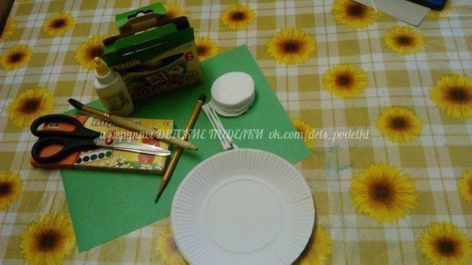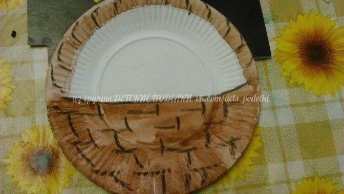 Корзинка с цветами из ватных дисков делается на основе одноразовых картонных тарелок.