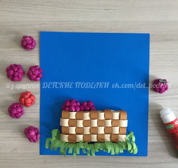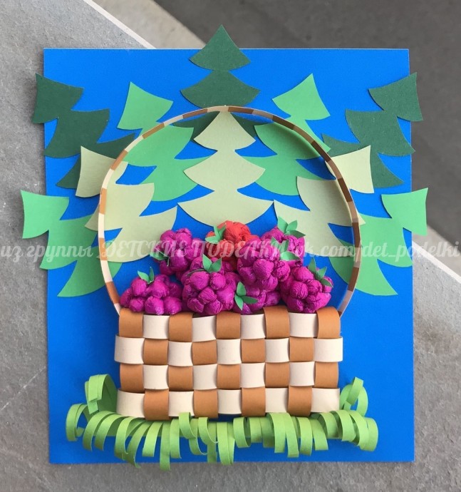 При желании можно сделать несколько поделок с лукошком, наполняя его разными ягодами, фруктами и грибами.