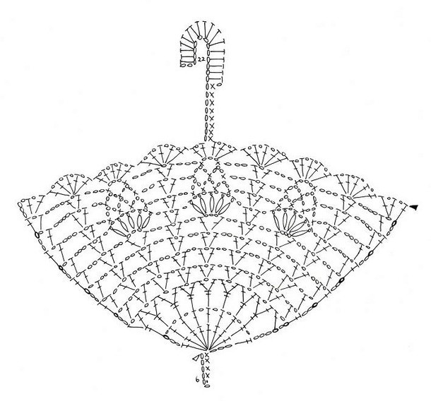 Вязаный зонт-аппликация может быть использован и как зонт для кукол, если его накрахмалить.