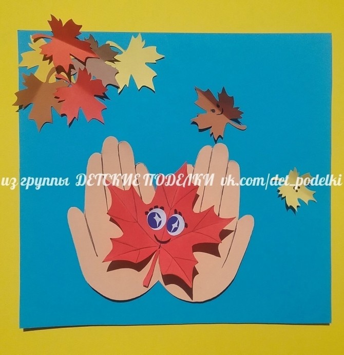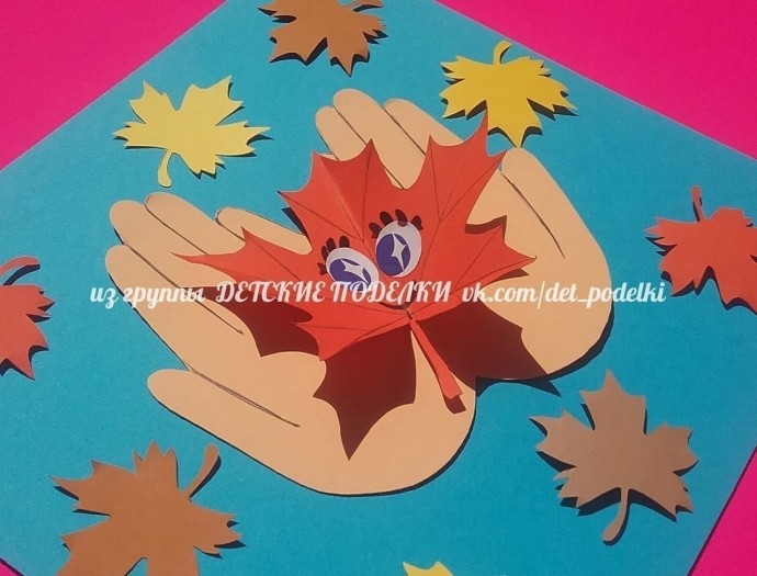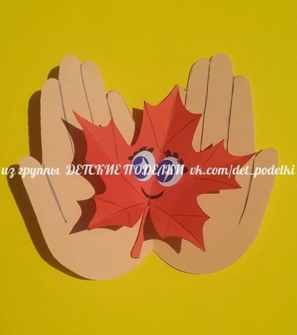 Осень на ладошке может быть представлена как листьями, так и осенними плодами.