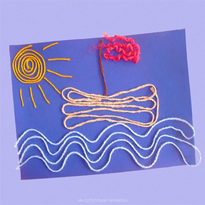 «Рисунки», выполненные толстой нитью или шнуром, отличаются мягкостью получаемых форм, кажутся объёмными и «живыми» по сравнению с обычным контурным изображением. Кроме того занятия с податливой, мягкой и пушистой нитью успокаивают детей и развивают у них интерес к творчеству.