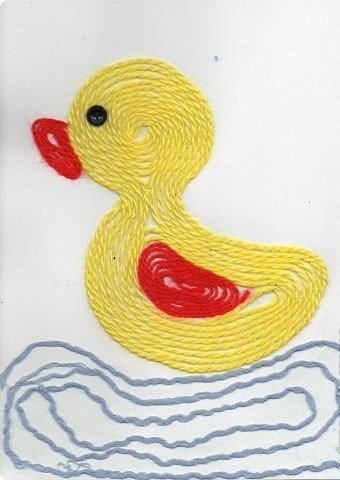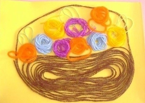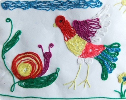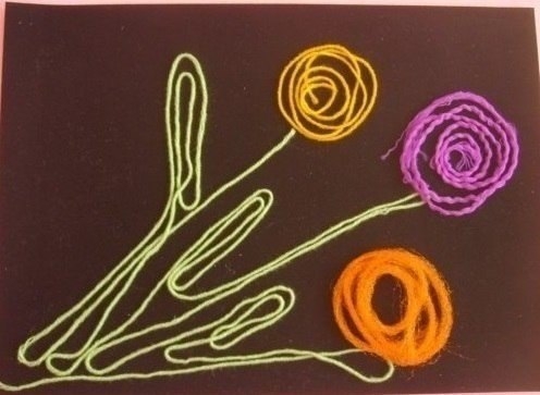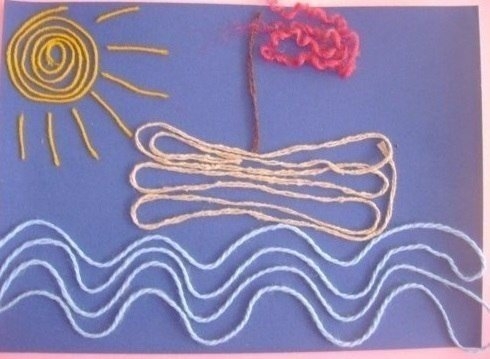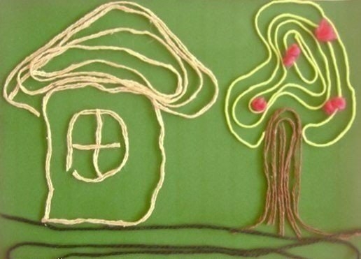 «Рисунки», выполненные толстой нитью или шнуром, отличаются мягкостью получаемых форм, кажутся объемными и «живыми», по сравнению с обычным контурным изображением. Кроме того занятия с податливой, мягкой и пушистой нитью успокаивают детей и развивают у них интерес к декоративно-прикладному искусству.