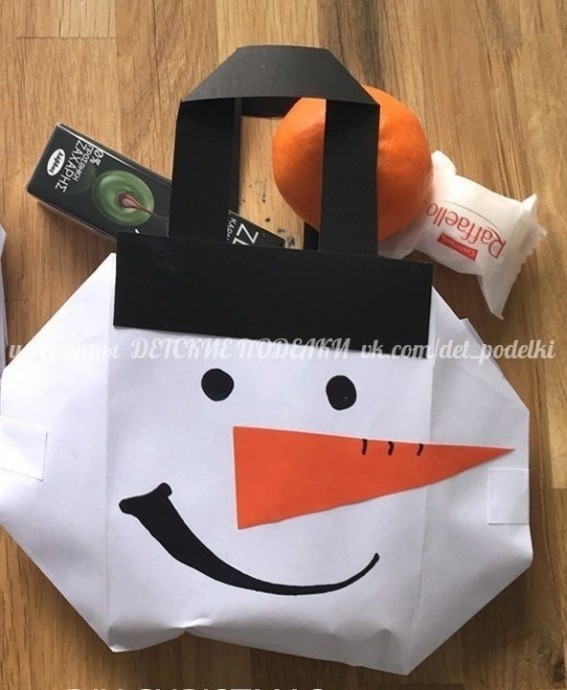 Изготовление подарочной новогодней сумки-снеговика это испытание ребенка на аккуратность и терпение.