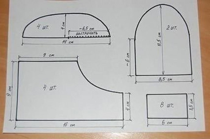 Такую обувь можно сшить и маленьким куклам, изменив размер.