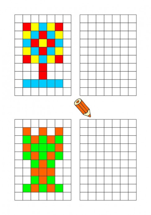 Повтори узор по клеточкам - это задания, рассчитанные на развитие внимательности и сосредоточенности в работе у ребенка.