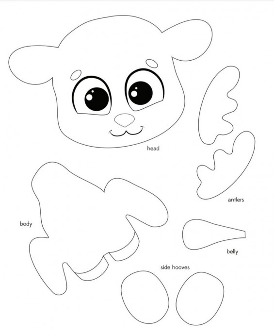 Шаблон для зимней аппликации "Милый оленёнок" предоставлен, чтобы у детей был выбор делать его из цветной бумаги или разукрасить детали акварелью.