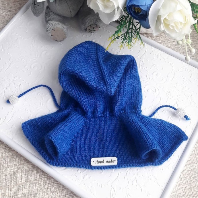 Сшить капюшон,обвязать крючком полочки и капюшон. Завязки (120вп) вставить в дырочки от накидов. Украсить бусинами. Готово.
