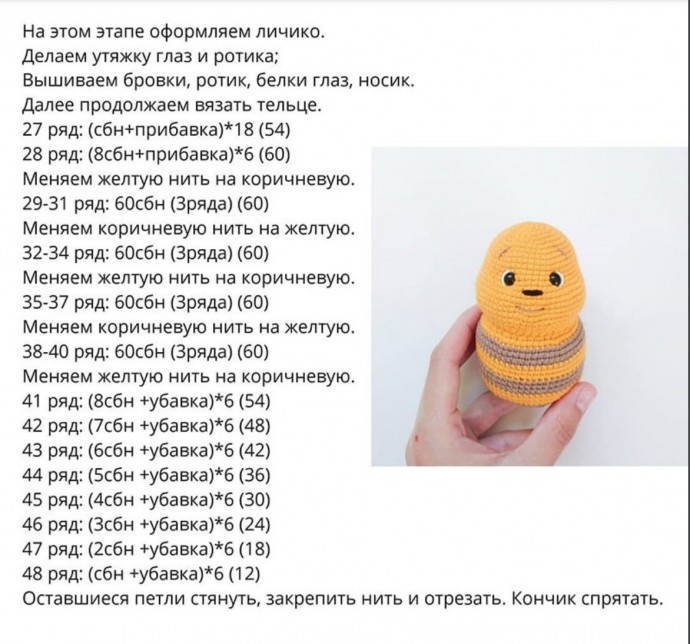 Новые материалы от 25 февраля Пчелка-трудяжка Пчелка-трудяжкаАвтор: Жанна Монина. пчелка-трудяжка, пчела, пчелы, пчелка, пчелки, трудяжка, трудяжки, игрушка, игрушки, игрушечка, игрушечки, мягкая игрушка, мягкие игрушки, мягкая игрушечка, мягкие игрушечки, пряжа, из пряжи, клубок, клубочек, клубки, клубочки, ника, нитки, спица, спицы, крючок, крючки, вязать, вязание, вяжем, связали, набор петель, ножницы, перекусы, маркер, маркеры, выкройка, шаблон, моделирование, модель, схемы, схемы узоров, узоры, лучшие узоры, размер, размеры, петля, петли, петелька, петельки, ряд, ряды, подарок, подарочек, подарки, подарочки, дарить, дар, в дар, дары, подарить, подарено, поделка, поделки, поделочка, поделочки, детская поделка, детские поделки, творчество, детское творчество, поделки с детьми, поделки с ребенком, творение, творить, делать, сделать, творить вместе, делать вместе, творчество с ребенком, мастерим вместе, мастерить вместе, мастерство, развитие, творческое развитие, развитие мелкой моторики Мне нравится19 1 Добавить в закладкиНазначить теги OK VK Facebook @mail.ru Pin! Пчелка-трудяжкаПчелка-трудяжкаПчела голодная была,Накрыла стол себе пчела:Нектар в ромашку налила,И, позабыв про все дела,Уселась, свесив ножки,А жало – вместо ложки.Пчелка-трудяжкаПчелка-трудяжкаМед можно сделать из скомканных салфеток.ПчелкаЭту пчелку с огромным удовольствием сделают самые маленькие.Пчелка .Аппликация .Аппликация - пчелка .Пчелка .Рисуем пчелку .Дочка нарисовала овал желтой гуашью , а я превратила его в пчелку , обрезав лист и добавив детали черной краской .Пчелка .Акварельная пчелка .Рисуем пчелку с помощью ножек .ПчелкаПчелка .Рисуем акварелью .Рисуем пчелку .ПчелкаОчаровательный милый, несущий тепло подарок — пчелка. Ее очень просто сделать. Что может обрадовать бабушку и дедушку сильнее, чем подарок, изготовленный руками их маленького внука? Любая мелочь, любо...Пчелка из бумагиПчелка из пряжиПчелка из пряжиАвтор: vivi_toys.Подробное описание процесса вязания смотрите на картинках ниже.Пчелка из пряжиПчелка из пряжиВыбирайте ярко-желтый, чтобы пчёлка выглядела наряднее. Написать комментарий Ваше имя: E-mail для ответов: Загрузка... 1 комментарий Екатерина 2023-02-27 09:14:40 (отредактировано) # ↓ Ой какая очаровашка получается, возьму себе на заметку. Ответить Самое популярное