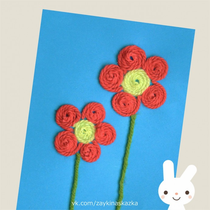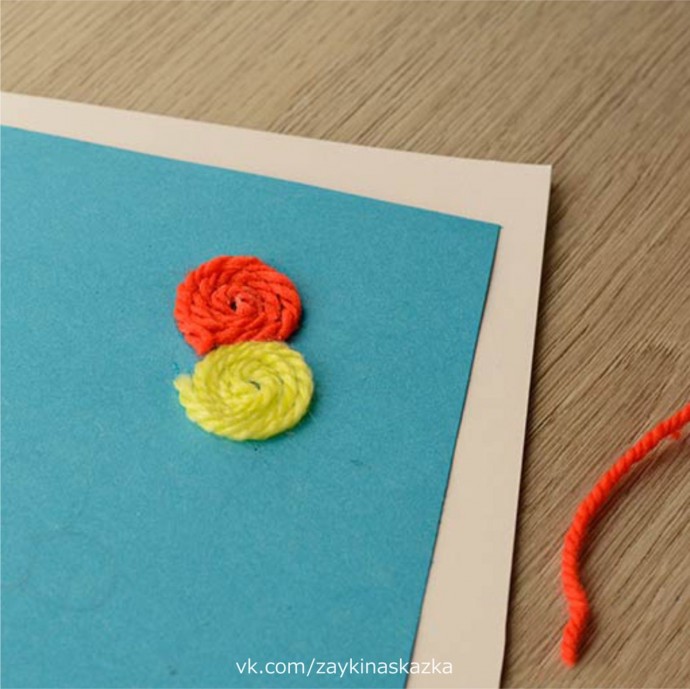 Из толстой пряжи аппликации с ниточками получаются объемнее.